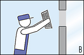 Den vormontierten Sanierungsadapter bestehend aus Montageblech und PROMATECT LS-Zuschnitt stirnseitig mit PROMAT-Kleber K84 versehen.